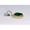 Our handsome diamond emerald pendant is the latest trend in men's fashion! Lovely created from warm 14k yellow gold, it features large natural green emerald in the center of 6.00 carats. It is surrounded with icy white round brilliant-cut natural diamonds (1.00 carat). The bail is also set with diamonds, and can fit the chain up to 5 mm in thickness. This men's diamond pendant has total height of 32 mm, and the frame is 19 x 15 mm. Make a fashionable statement wearing this magnificent gemstone drop pendant!