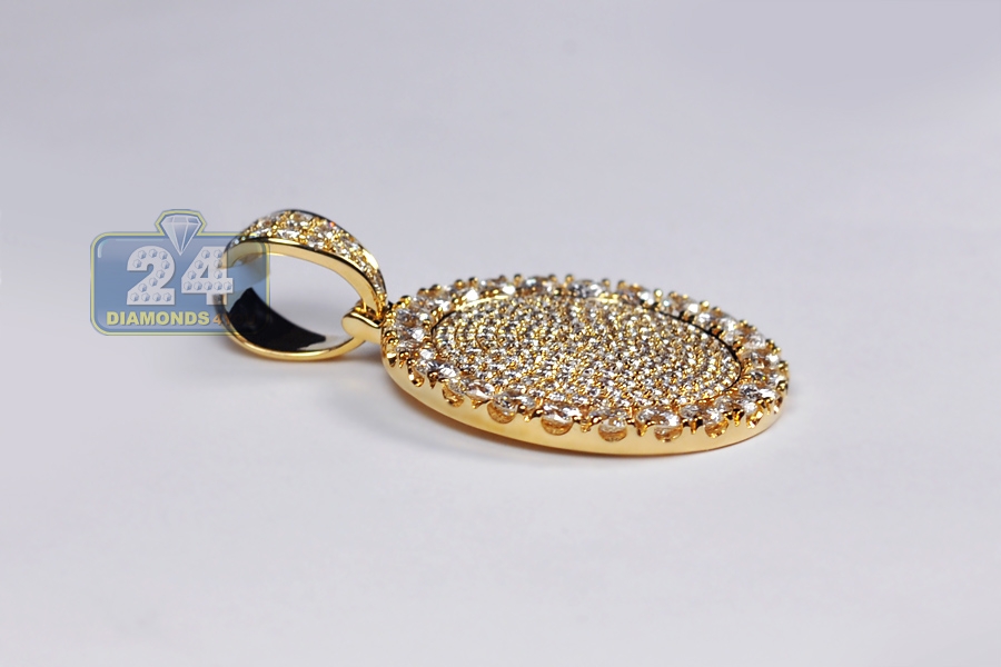 14K Yellow Gold 7.73 ct Diamond Mens Round Pendant