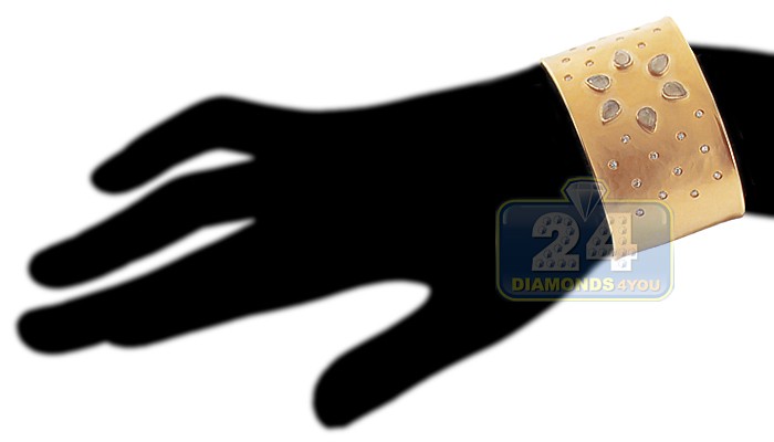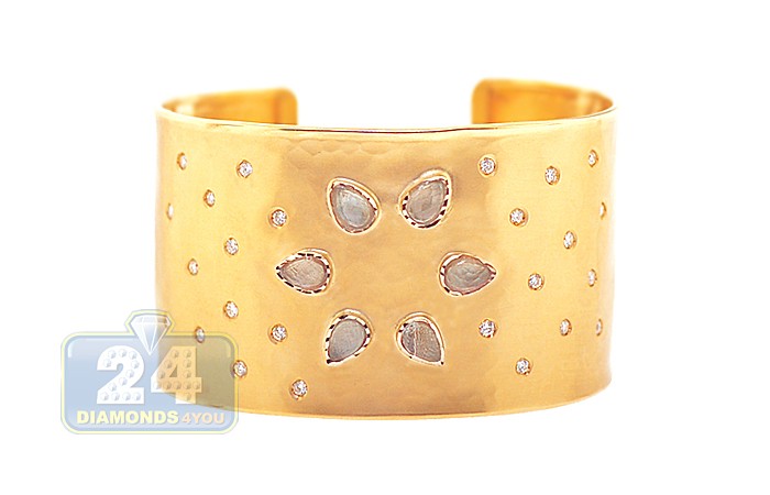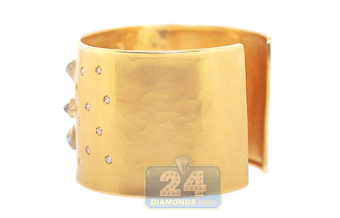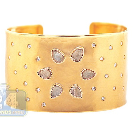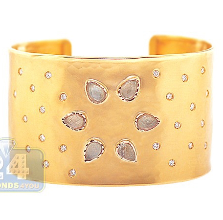14K Yellow Gold 9.27 ct Quartz Diamond Womens Cuff Bracelet