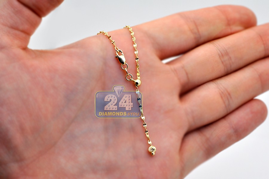 You're looking at an exclusive gold necklace! It's made of solid 14k yellow gold, and has adjustable feature - you can regulate the length of the chain. You can wear this breathtaking gold chain alone or with your favorite charm!