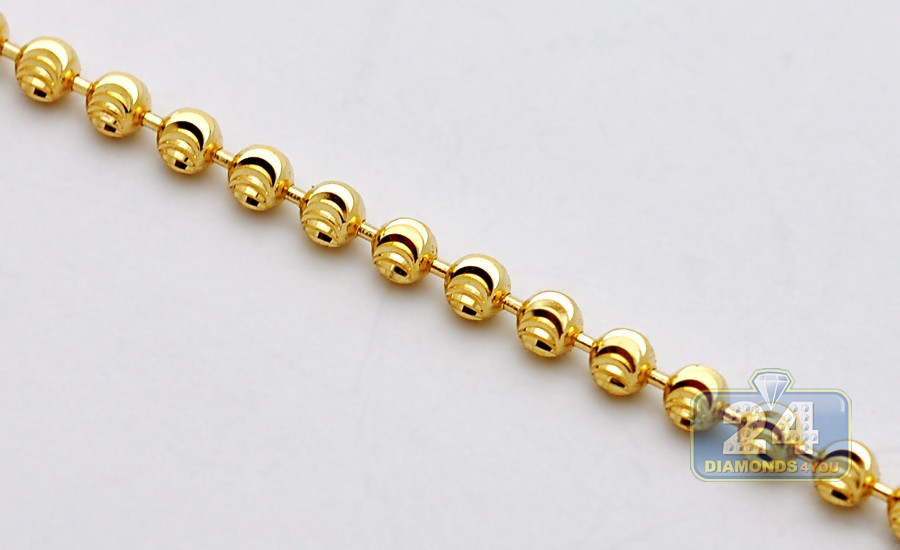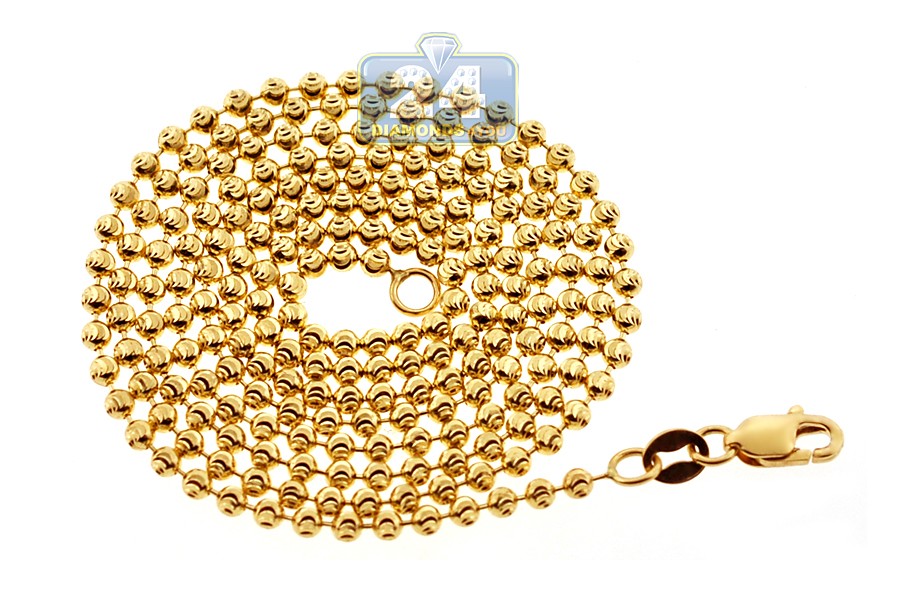 14K Yellow Gold Army Moon Cut Ball Mens Bead Chain 2 mm