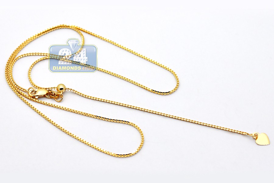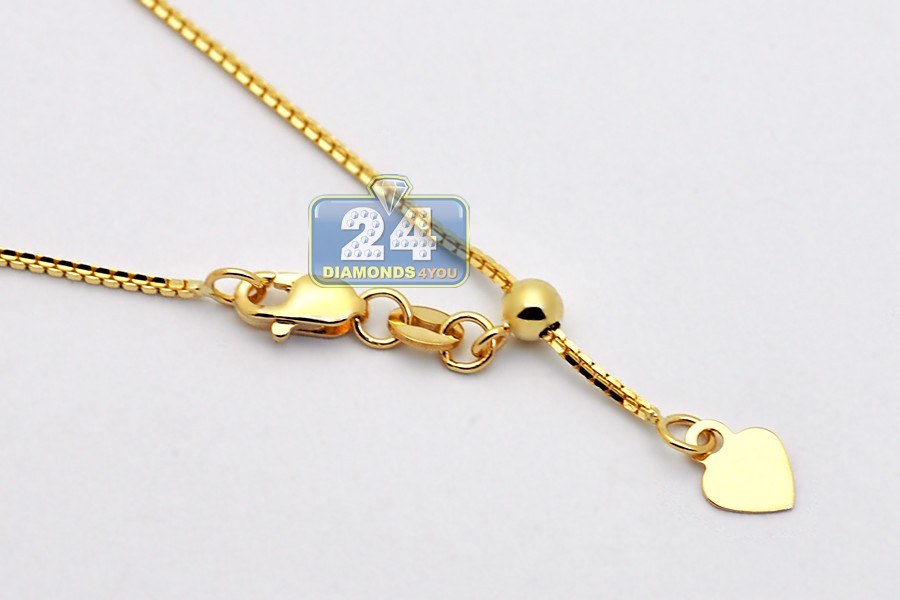 14K Yellow Gold Box Link Womens Adjustable Necklace 19 Inches