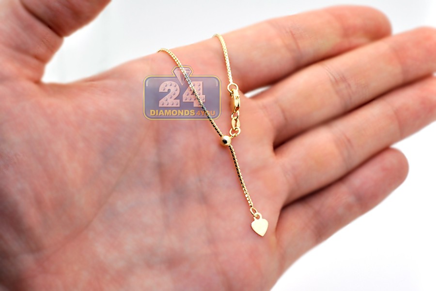 You're looking at an exclusive gold necklace! It's made of solid 14k yellow gold, and has adjustable feature - you can regulate the length of the chain. You can wear this breathtaking gold chain alone or with your favorite charm!
