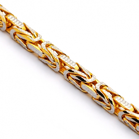 Our gold byzantine chain is a unique piece of jewelry for a special occasion! It features solid links with diamond cut pattern for extra shimmering. The byzantine necklace is masterly created from Italian 14k yellow gold, and has highly polished finish. It features 3.5 mm thickness, and available in 22, 24, 26 or 30 inches in length. This men's gold chain will get a lot of attention!