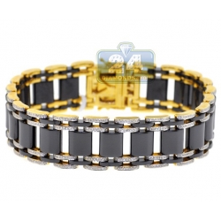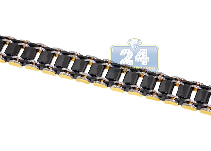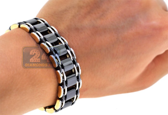 14K Yellow Gold Ceramic 1.75 ct Diamond Mens Bracelet 9 Inches