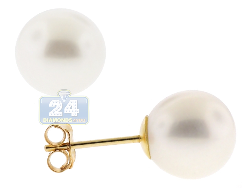 14K Yellow Gold Cultured Pearl Womens Stud Earrings 3-9 mm