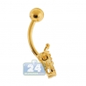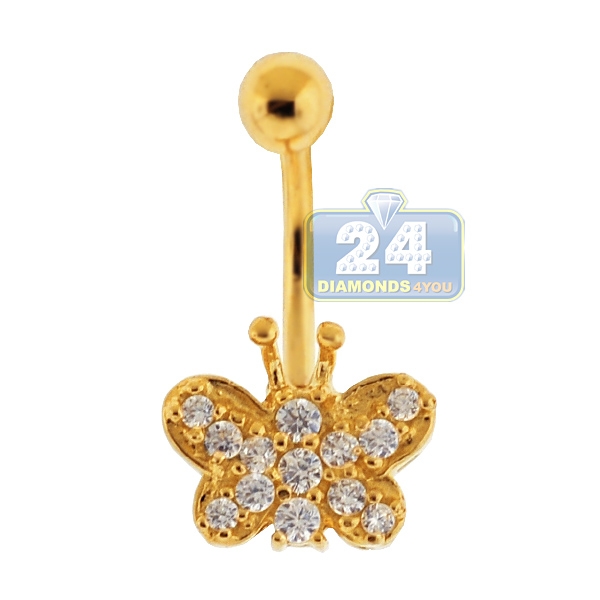 14K Yellow Gold CZ Butterfly Womens Belly Ring