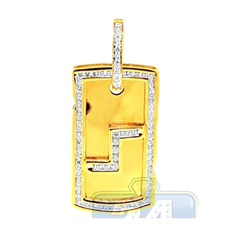 14K Yellow Gold 1.20 ct Diamond Framed Dog Tag Mens Pendant