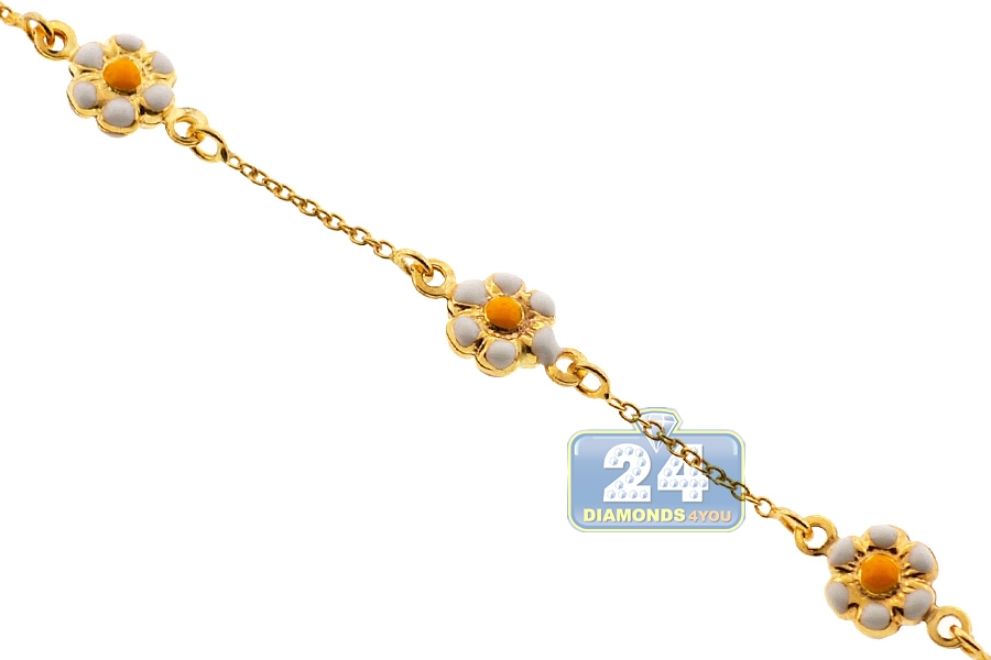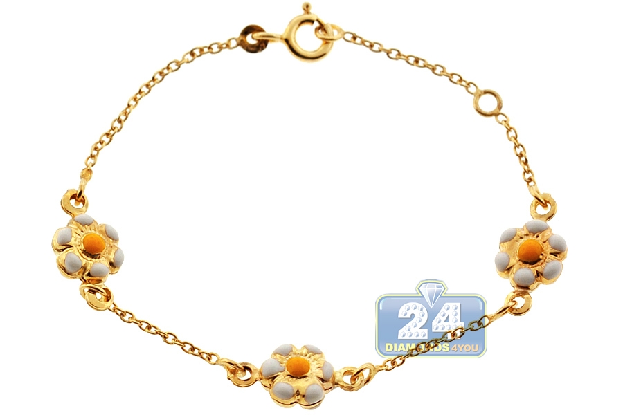 Featuring bright enameled flowers, this kids bracelet makes an adorable statement! It is made of lustrous 14k yellow gold, and has a user-friendly spring ring closure. The bracelet is also measured 5.75 inches in length, and it can be adjusted to 5 inches. Perfect gift for a little one!