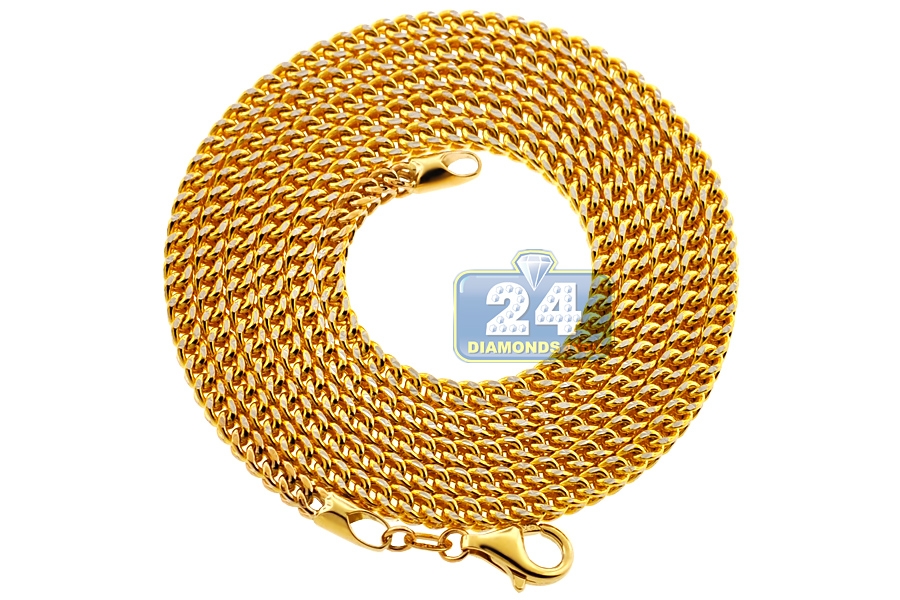 14K Yellow Gold Hollow Franco Diamond Cut Mens Chain 3 mm