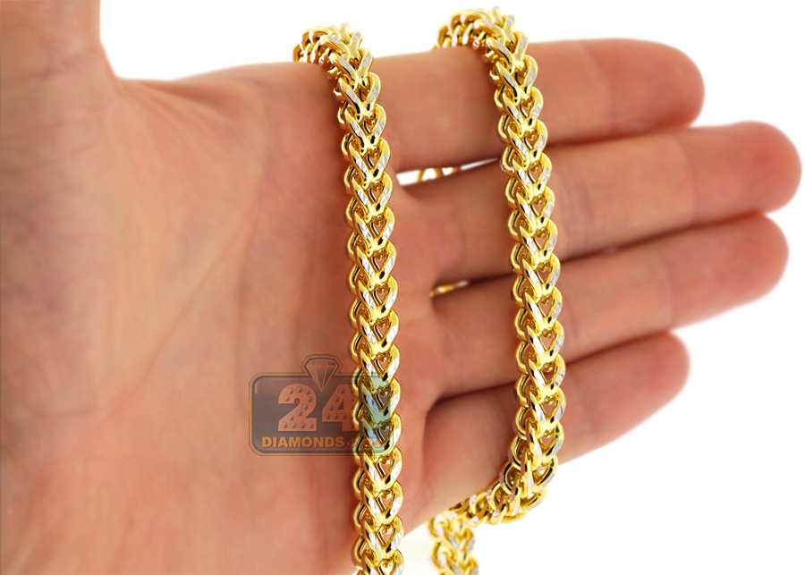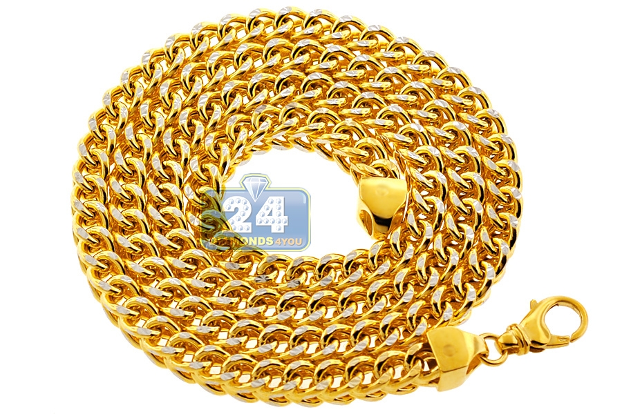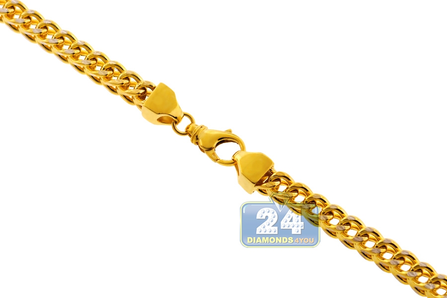 14K Yellow Gold Franco Diamond Cut Link Mens Chain 7 mm