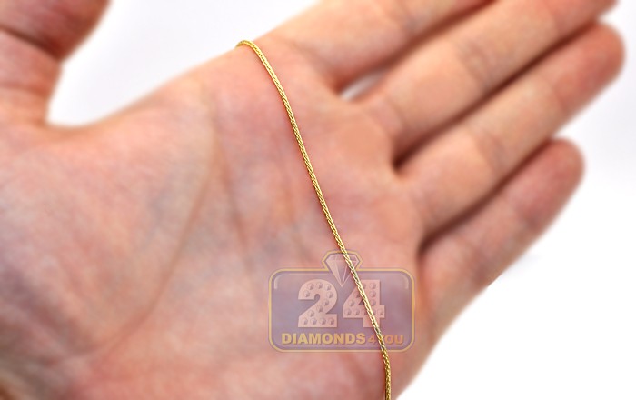 14K Yellow Gold Wheat Link Unisex Chain 1 mm 18 Inches
