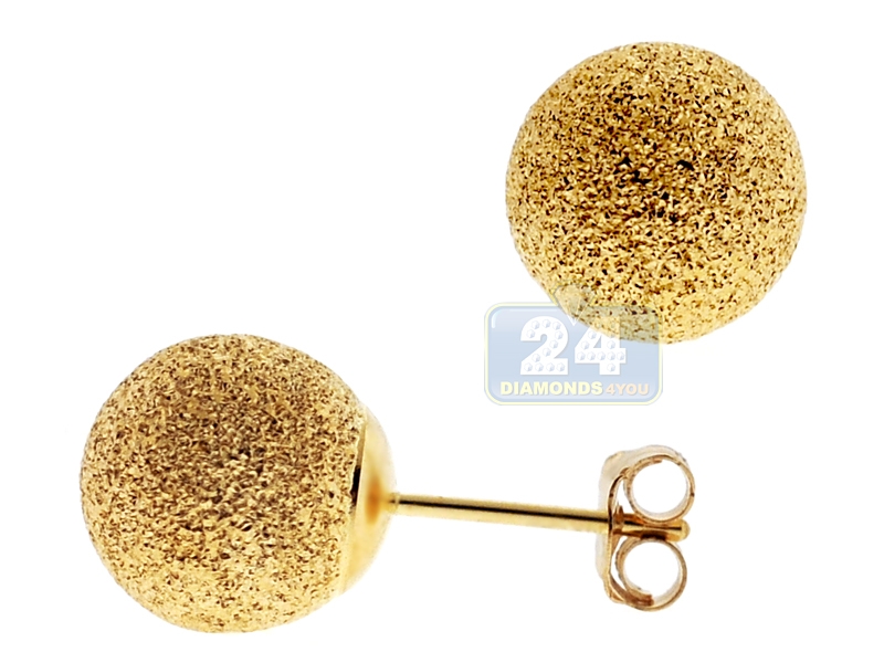 14K Yellow Gold Laser Cut Ball Womens Push Stud Earrings 4-10 mm
