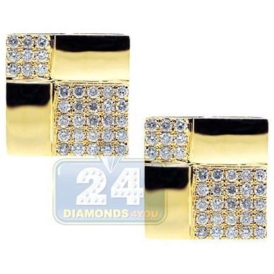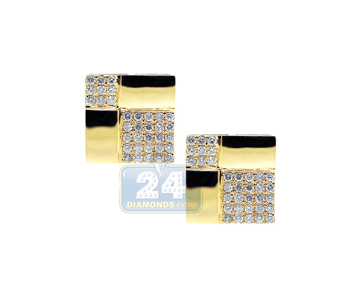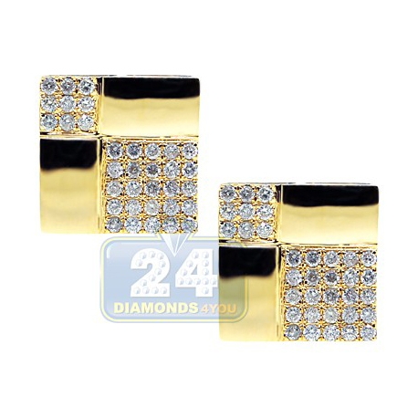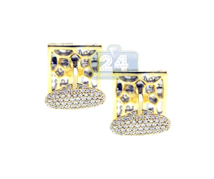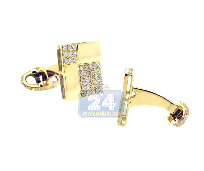 14K Yellow Gold 2.62 ct Diamond Square Mens Cuff Links