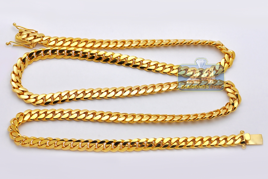 14K Yellow Gold Miami Cuban Link Mens Chain 9 mm 28 Inches
