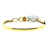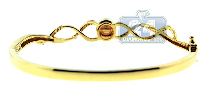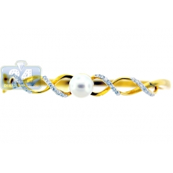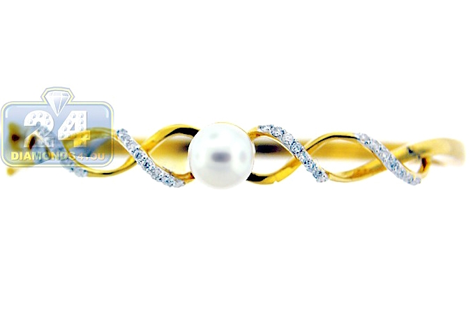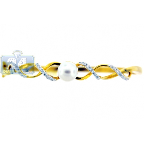 14K Yellow Gold Pearl Diamond Womens Round Bangle Bracelet