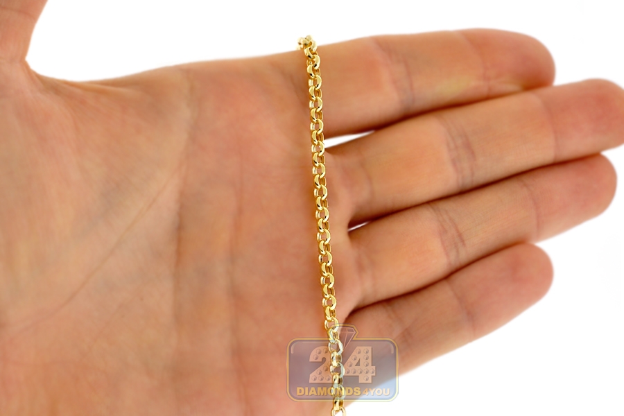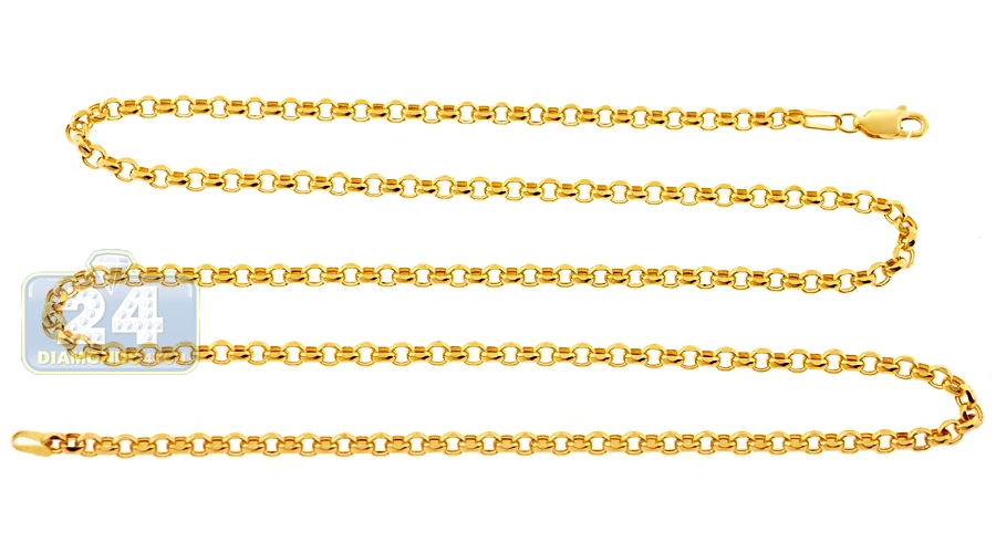 14K Yellow Gold Round Cable Puff Link Mens Chain 3.5 mm