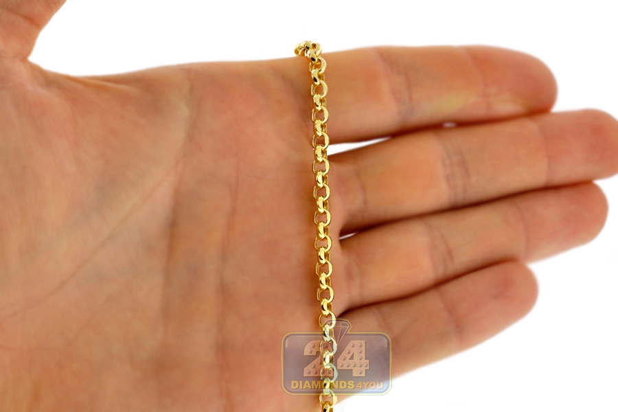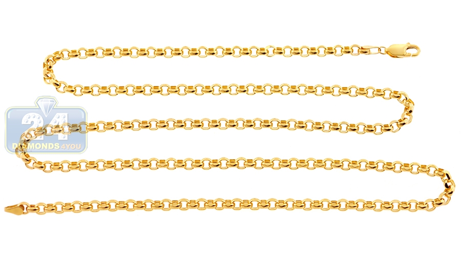 14K Yellow Gold Round Cable Puff Link Mens Chain 4 mm