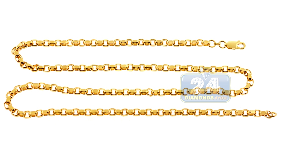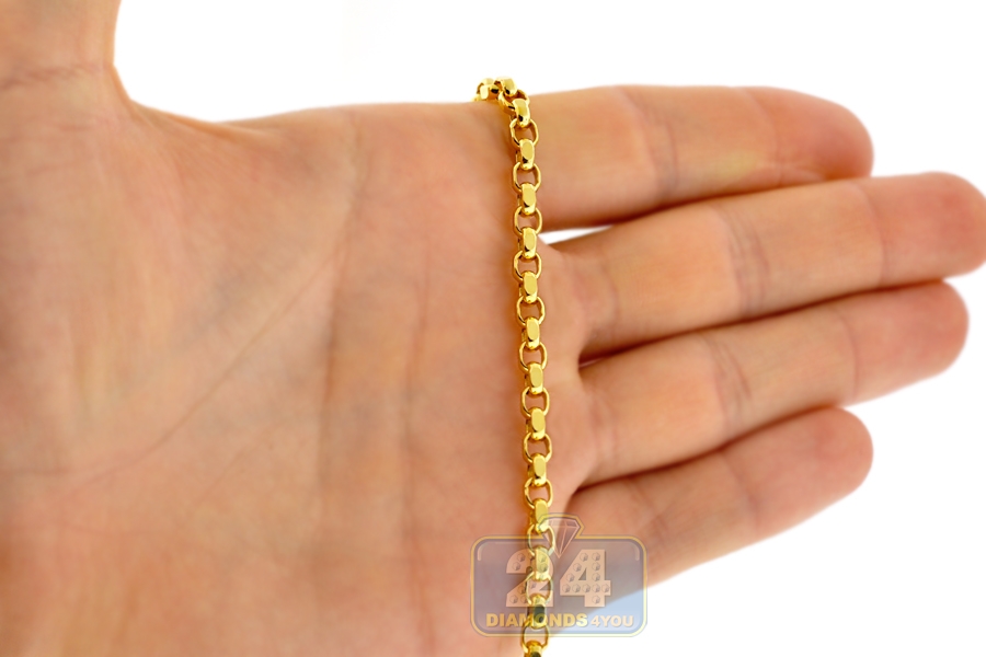 14K Yellow Gold Round Cable Solid Link Mens Chain 4 mm