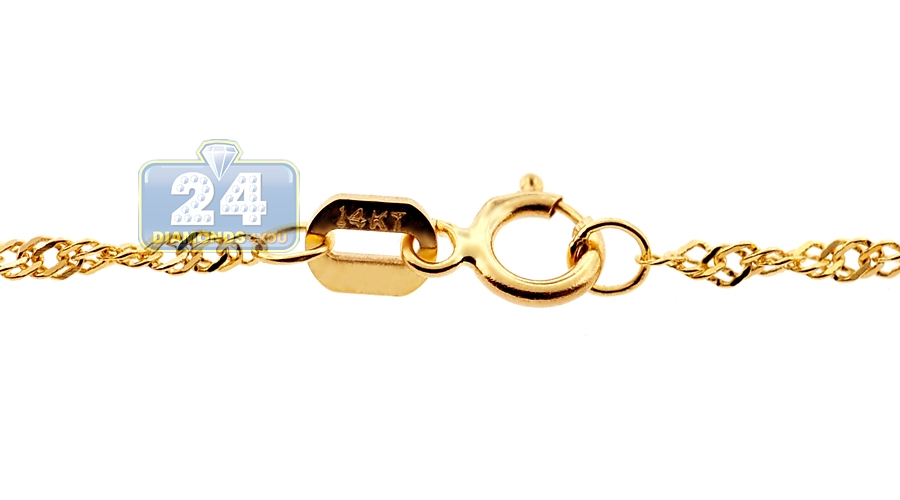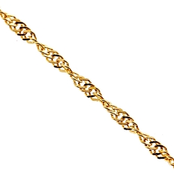 This singapore rope chain has a timeless look with a stylish splash! It's elegantly made of hot 14 karat yellow gold in Italy, and has highly polished shiny finish. The 14k yellow gold necklace has width of 2.5 mm, and can be order in length of 18, 20, 22 or 24 inches. It's closed by a comfortable spring ring. Choose women's gold chain for your light-weight pendant!