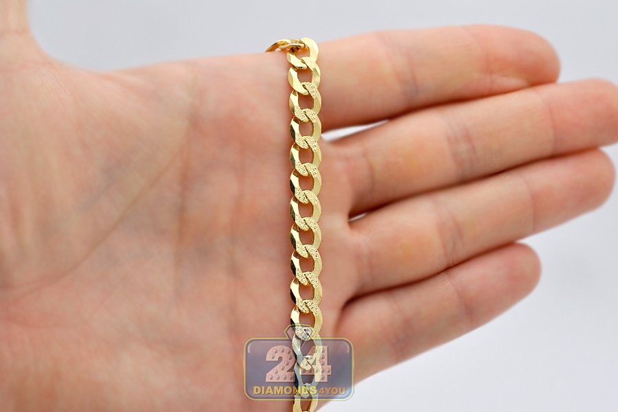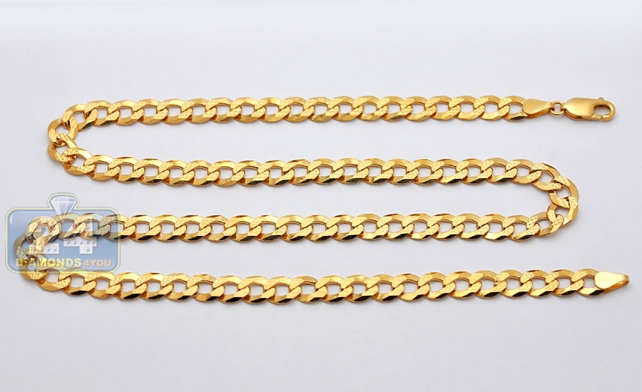 14K Yellow Gold Solid Cuban Diamond Cut Link Mens Chain 7 mm