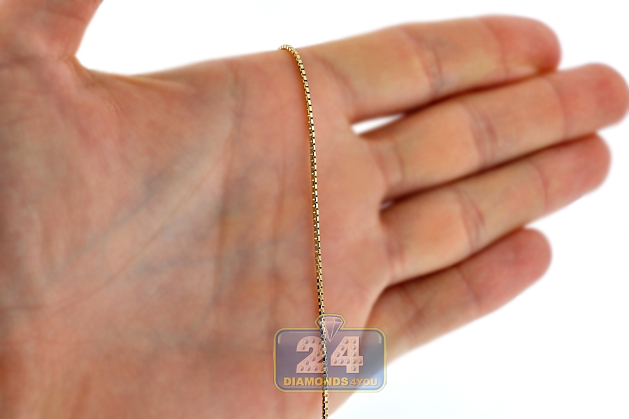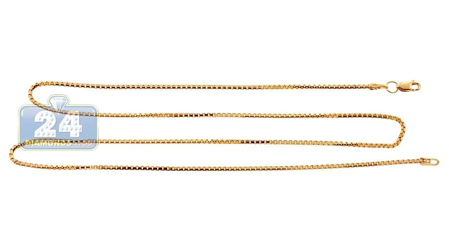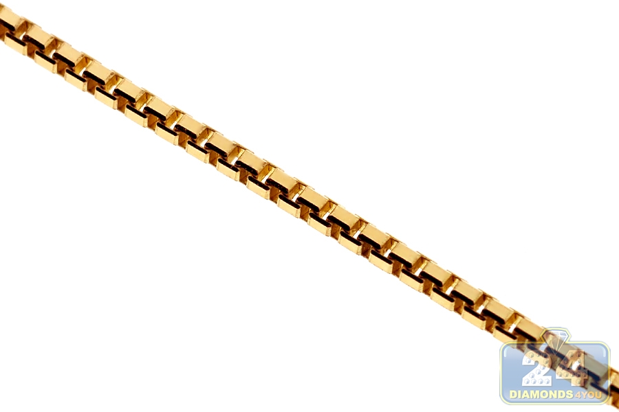 14K Yellow Gold Square Box Solid Link Mens Chain 1.2 mm