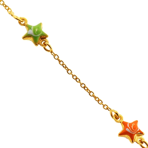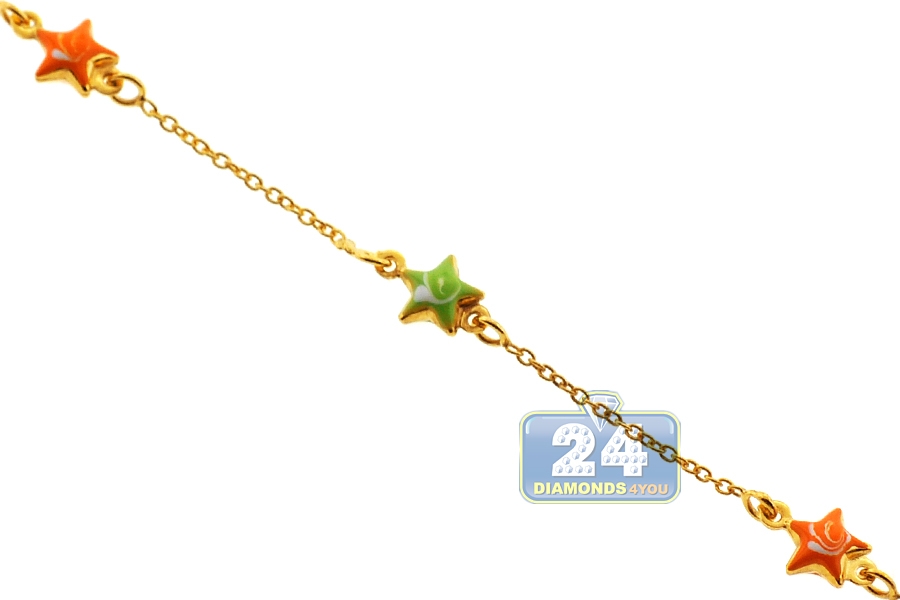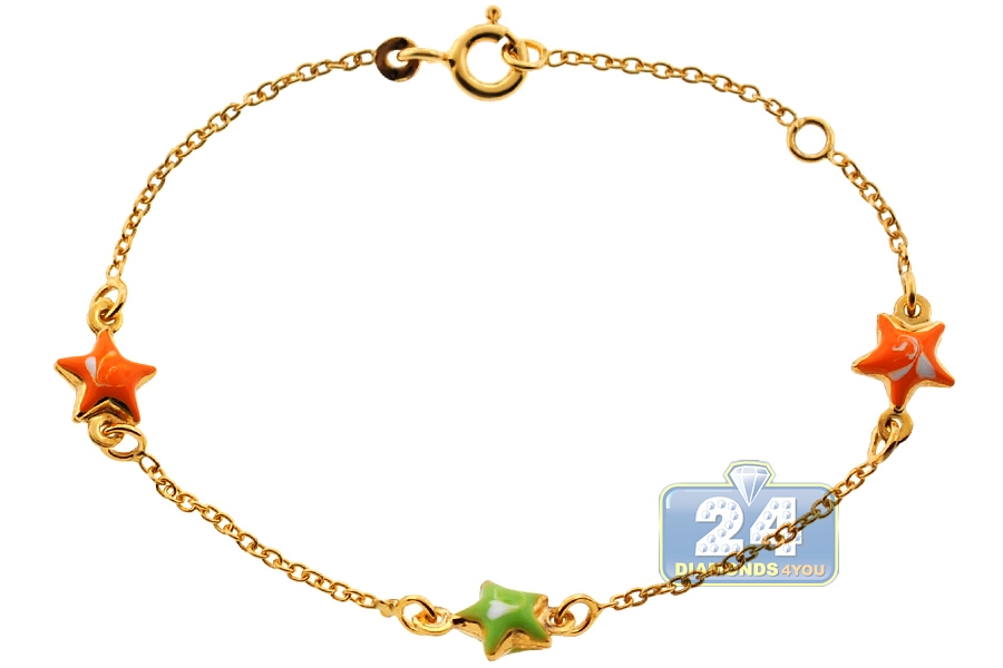 Links enameled with multicolored stars make this kids bracelet a favorite jewelry. It is made of lustrous 14k yellow gold, and has a user-friendly spring ring closure. The bracelet is also measured 5.75 inches in length, and it can be adjusted to 5 inches. This is an extra special gift that lasts forever!