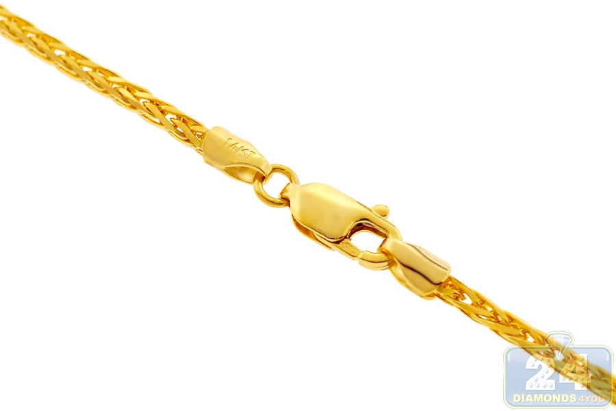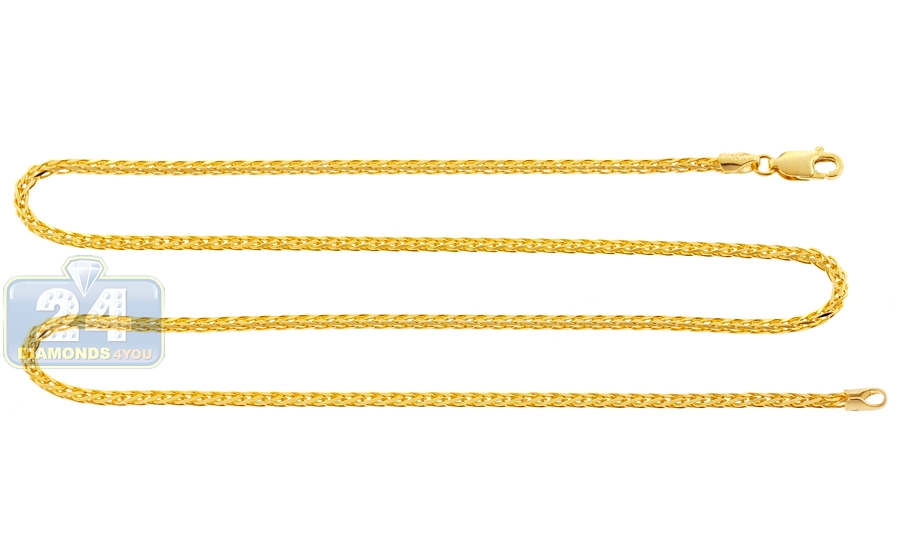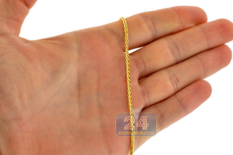 14K Yellow Gold Wheat Spiga Solid Link Mens Chain 2 mm