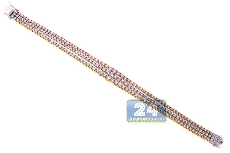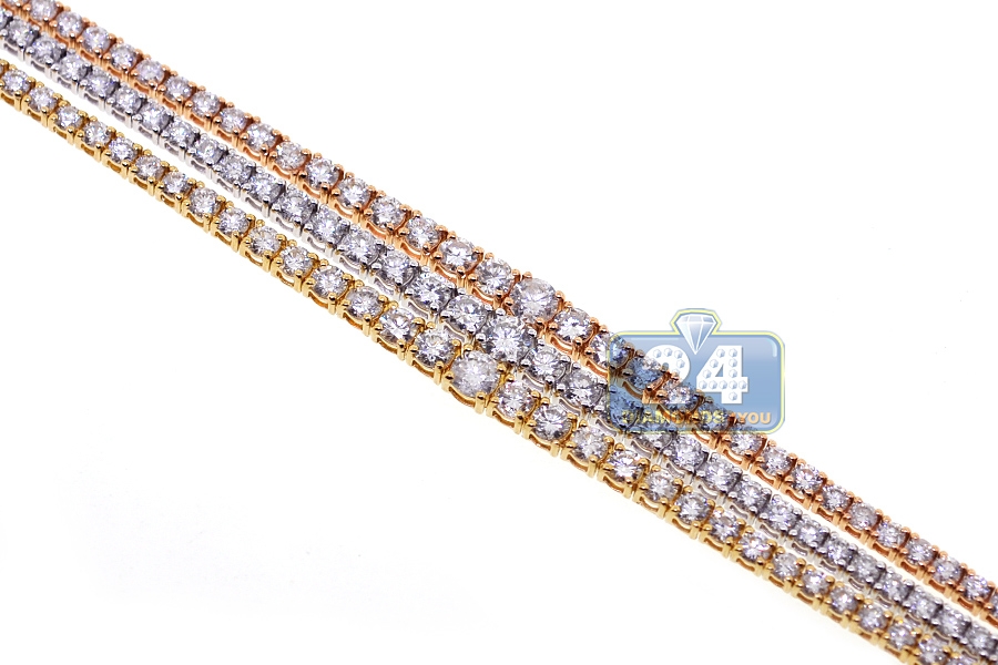 18K 3-Tone Gold 10.16 ct Diamond Womens Tennis Bracelet 7 Inch