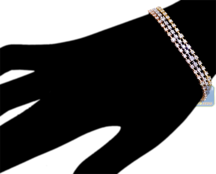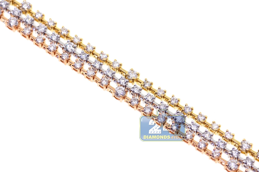 18K 3-Tone Gold 4.32 ct Diamond Station Womens Tennis Bracelet