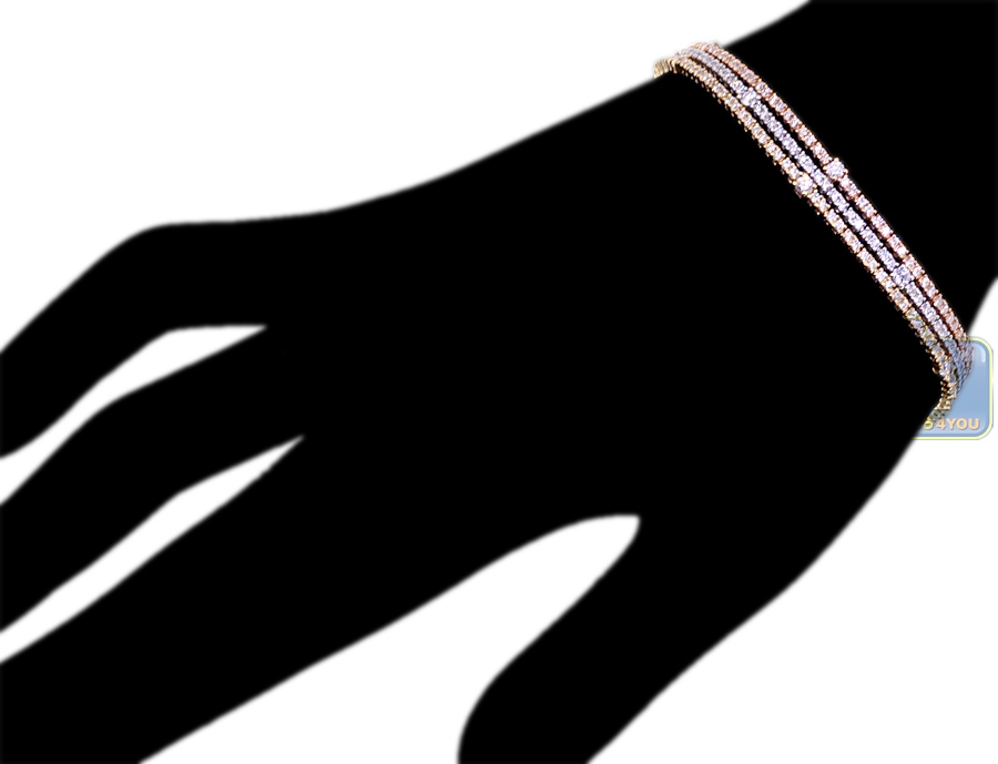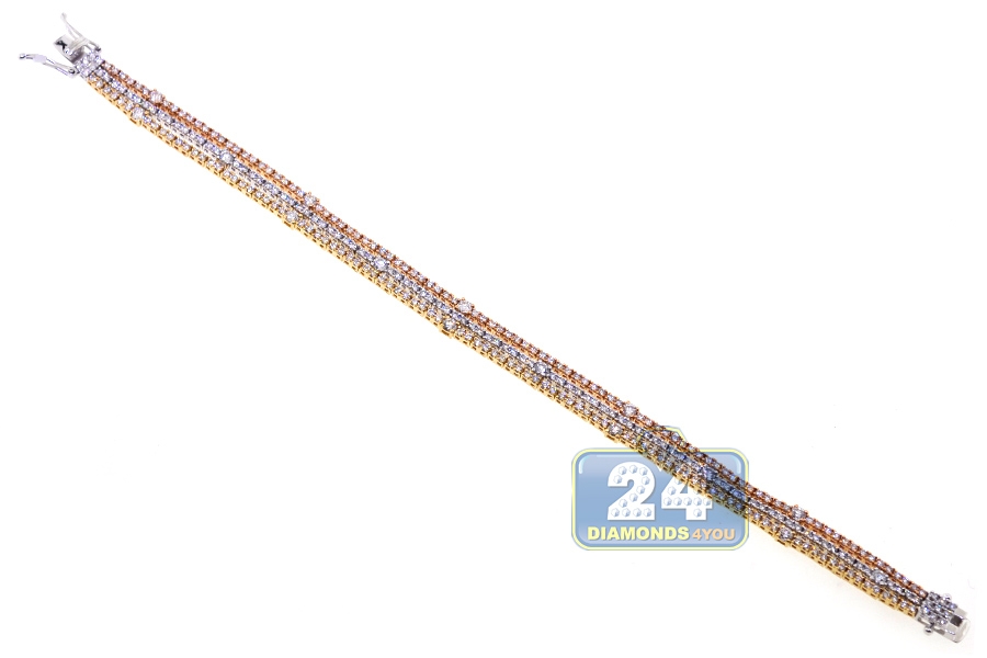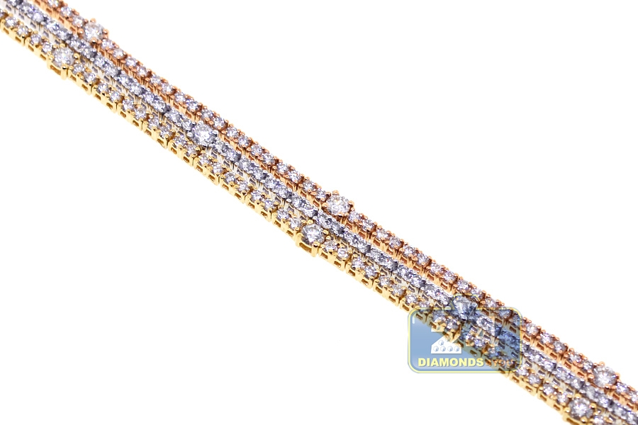18K 3-Tone Gold 4.77 ct Diamond Womens Multi Row Tennis Bracelet