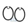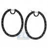 18K Gold 15.11 ct Black Diamond Oval Hoop Earrings 2.25 Inch