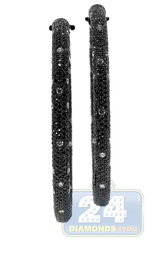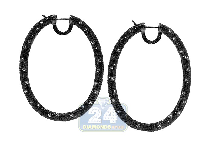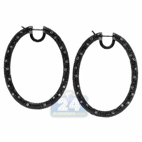 Adorn yourself with a jewelry absolutely stunning as you are! Our oval hoop earrings are crafted in luxurious 18k white gold, and covered with black rhodium for unique appearance. Maximizing shine comes from impressive and glittering icy white and black round brilliant-cut diamonds totaling 15.11 carats. Add a dose of chick effect to your look with these diamond hoop earrings!