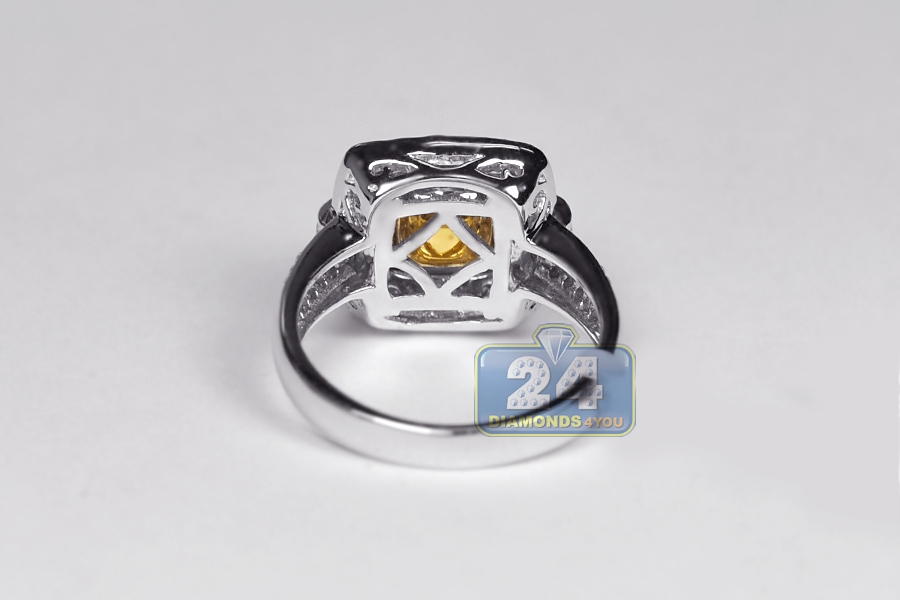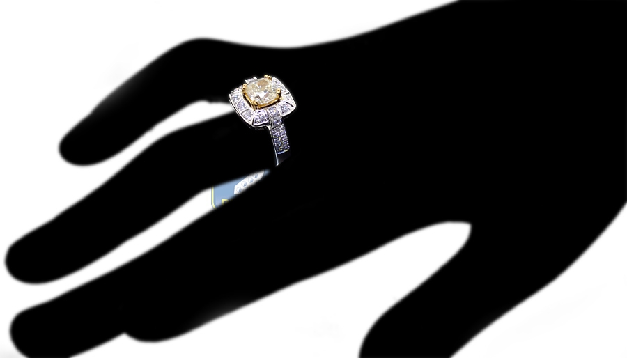 18K White Gold 2.59 ct Cushion Fancy Diamond Engagement Ring
