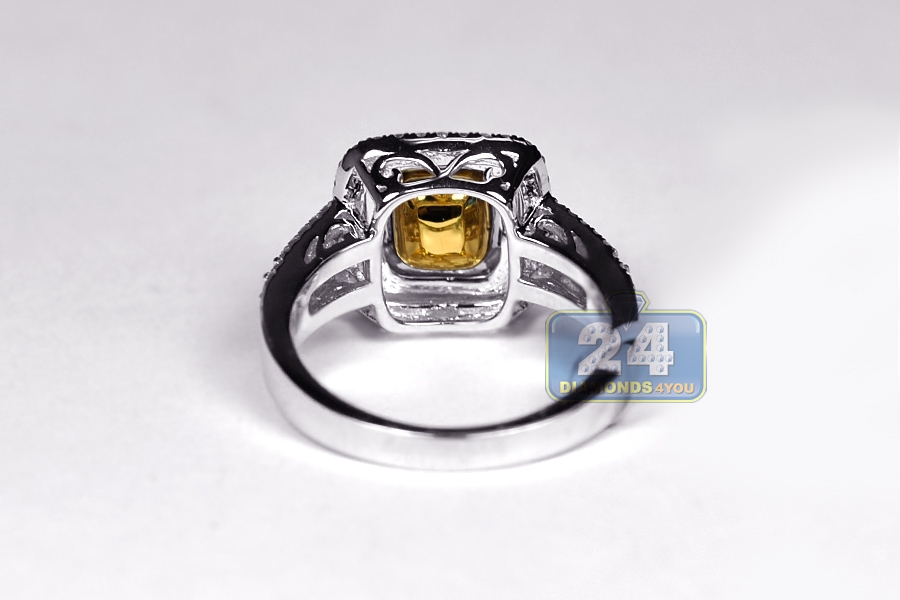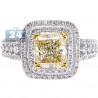 18K Gold 2.60 ct Fancy Yellow Cushion Diamond Engagement Ring