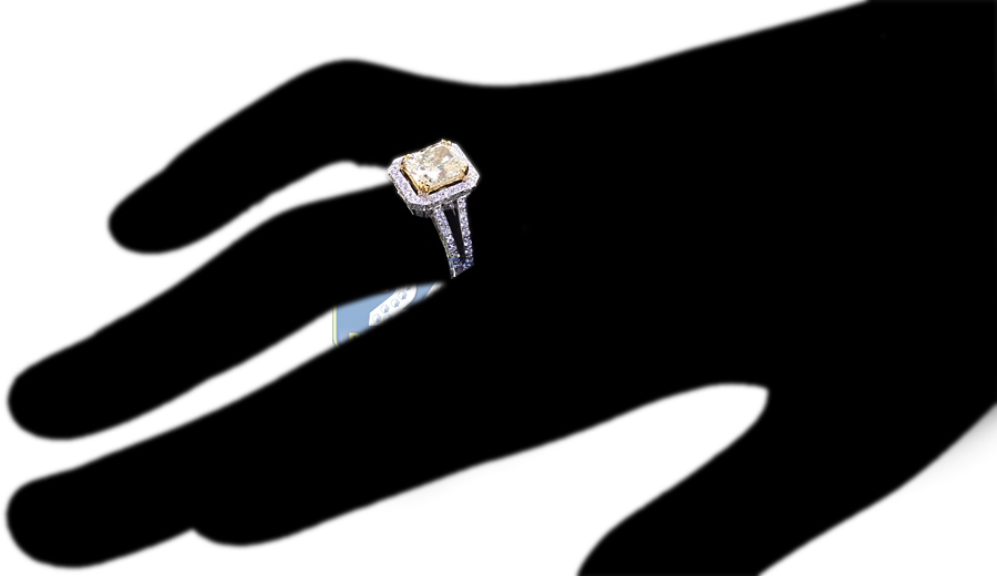 18K Gold 2.63 ct Cushion Fancy Diamond Engagement Ring