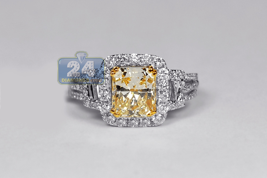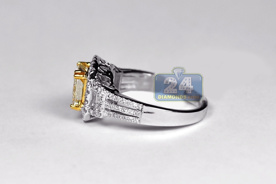 18K White Gold 2.86 ct Fancy Yellow Diamond Engagement Ring
