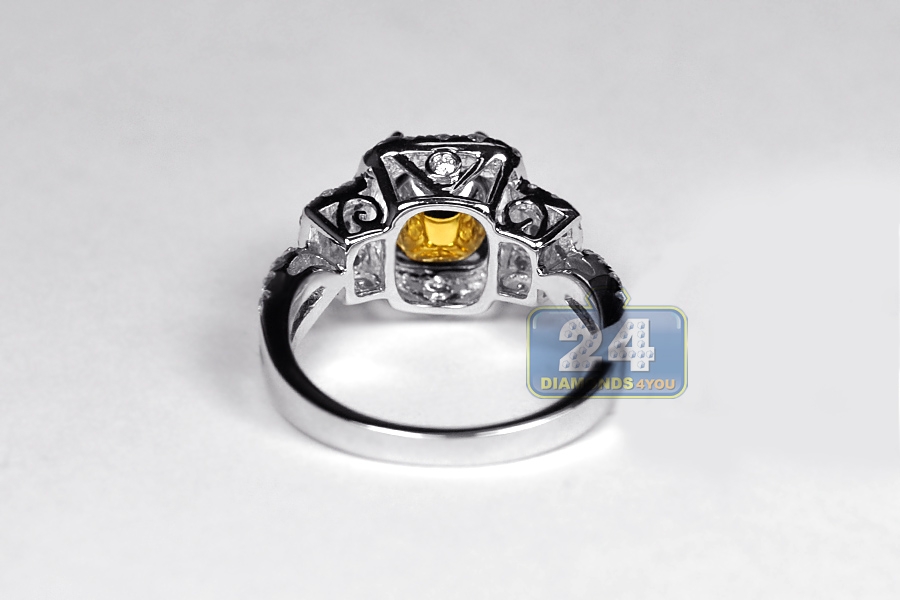 18K Gold 3.14 ct Fancy Yellow Emerald Diamond Engagement Ring