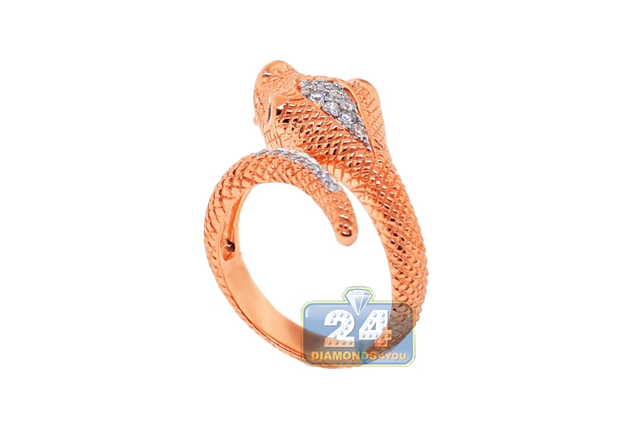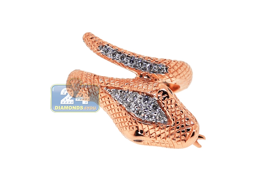 18K Rose Gold 0.40 ct Diamond Womens Snake Head Ring