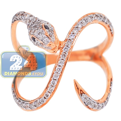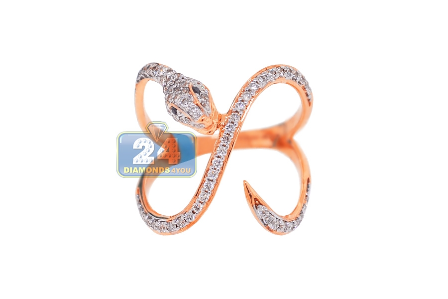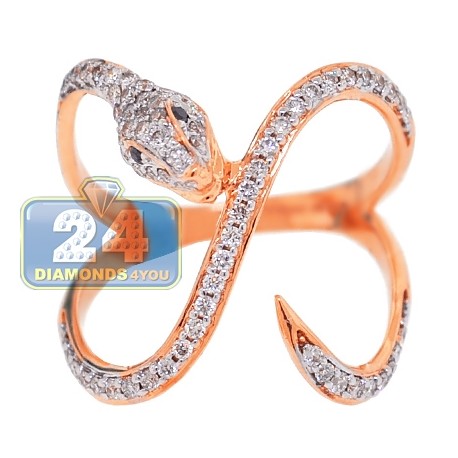 18K Rose Gold 0.54 ct Diamond Womens Winding Snake Ring