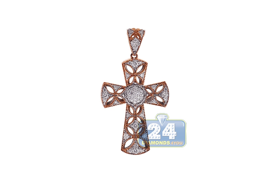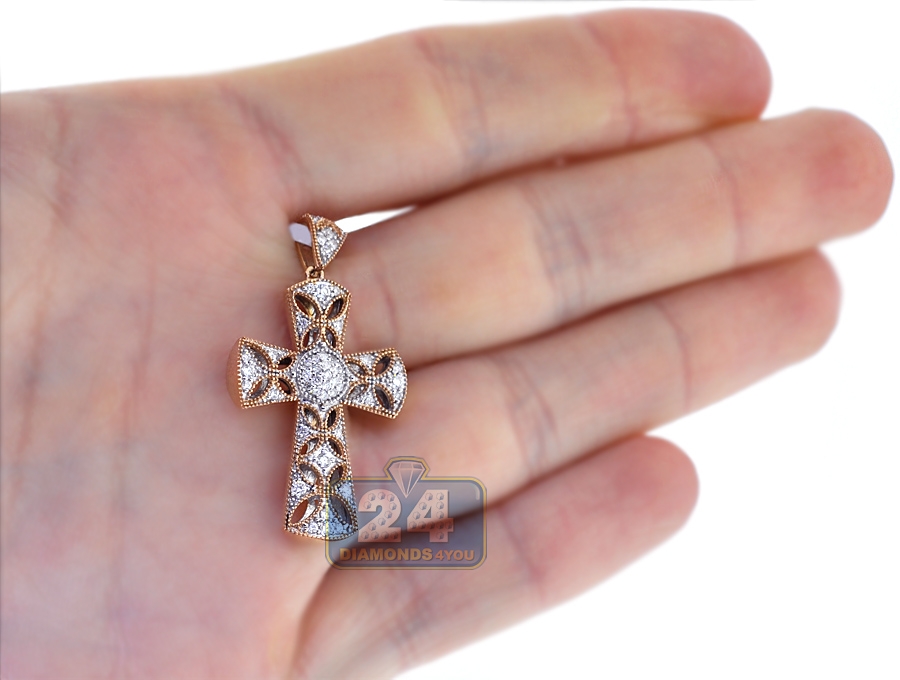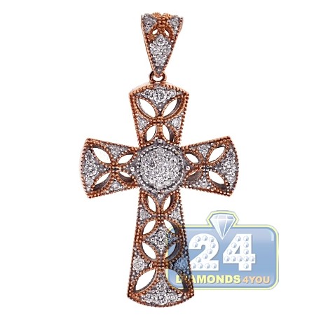 18K Rose Gold 0.58 ct Diamond Openwork Cross Pendant