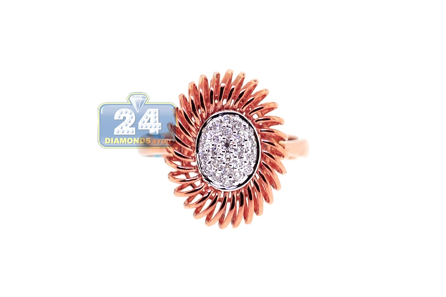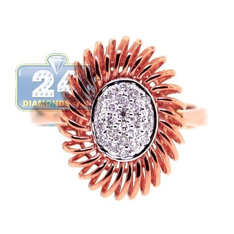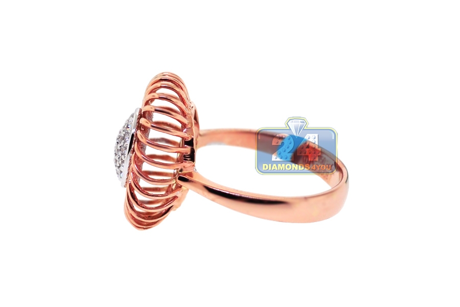 18K Rose Gold 0.20 ct Diamond Womens Openwork Flower Ring