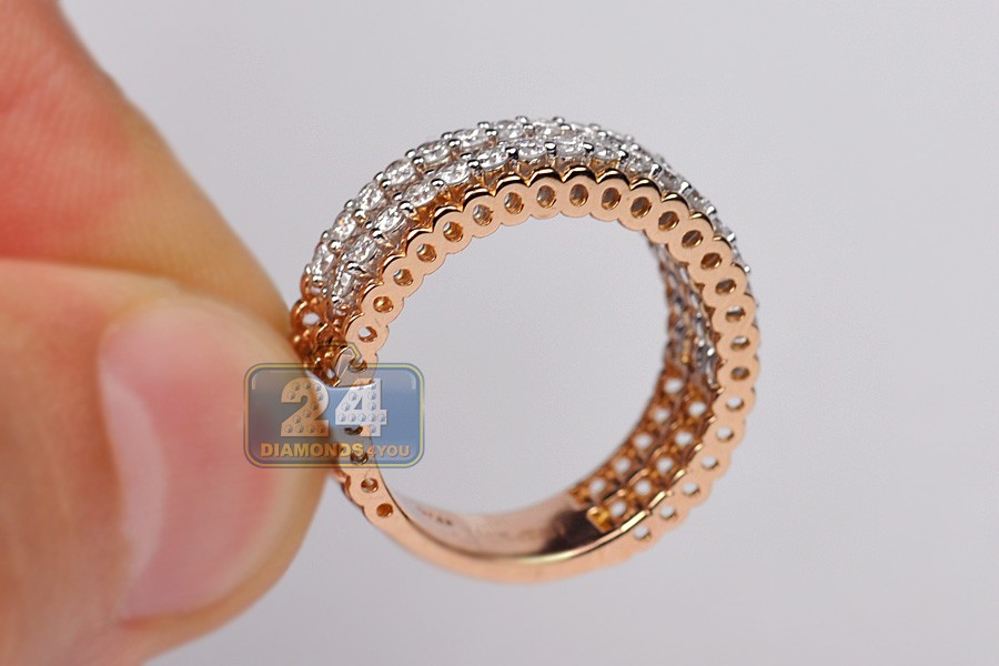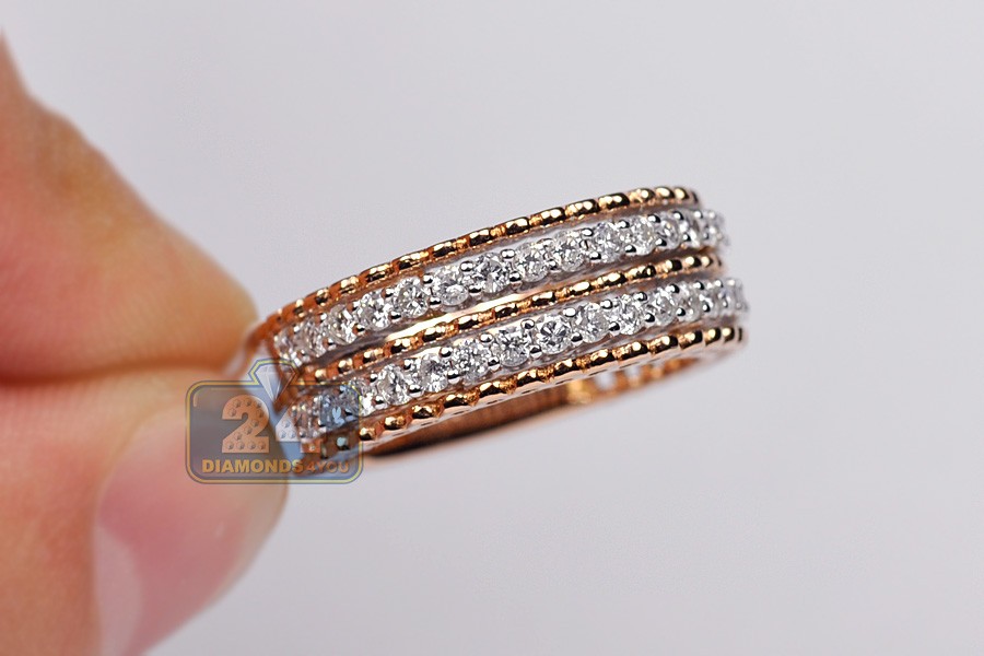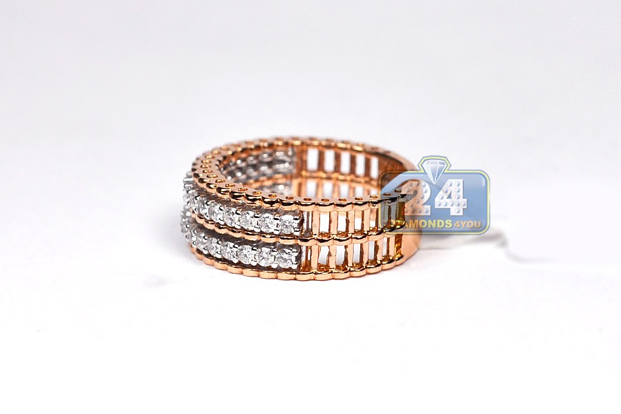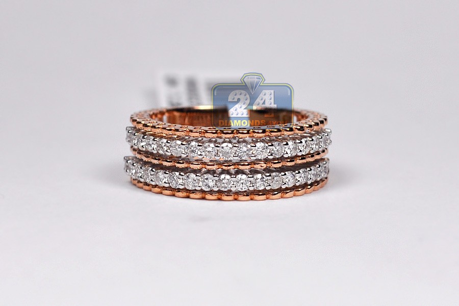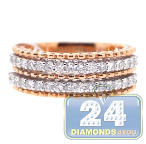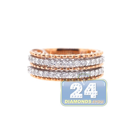 18K Rose Gold 0.80 ct Two Row Diamond Womens Ring