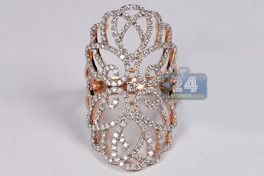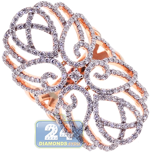 18K Rose Gold 1.82 ct Diamond Womens Filigree Ring
