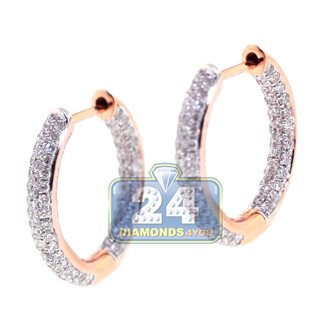 18K Rose Gold 1.08 ct Diamond Womens Round Hoop Earrings