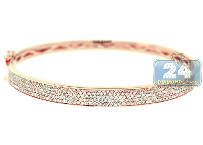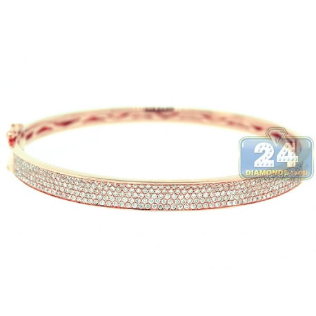 18K Rose Gold 1.20 ct Diamond Womens Round Bangle Bracelet