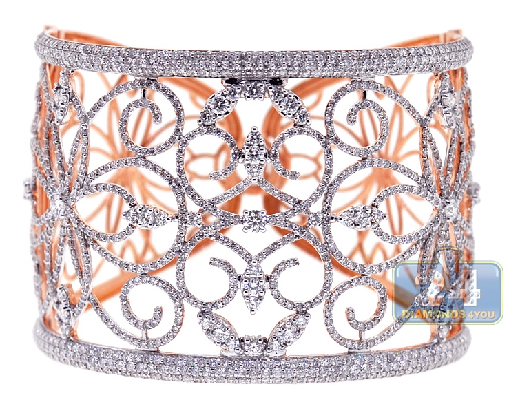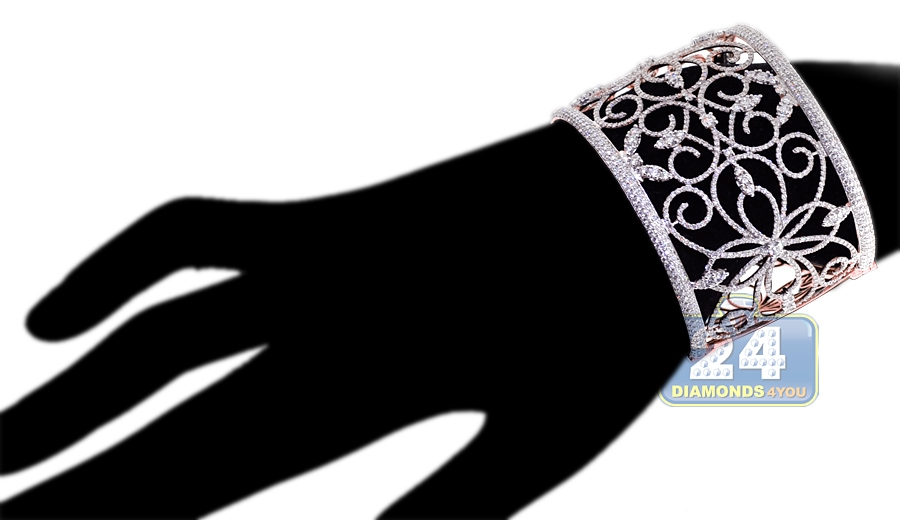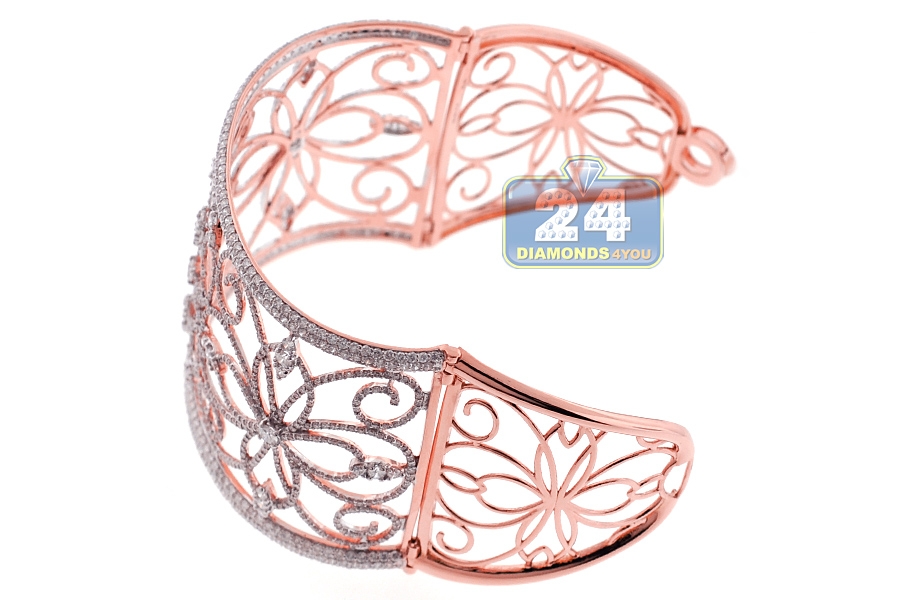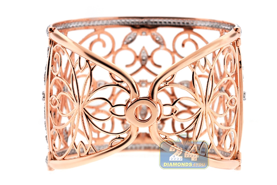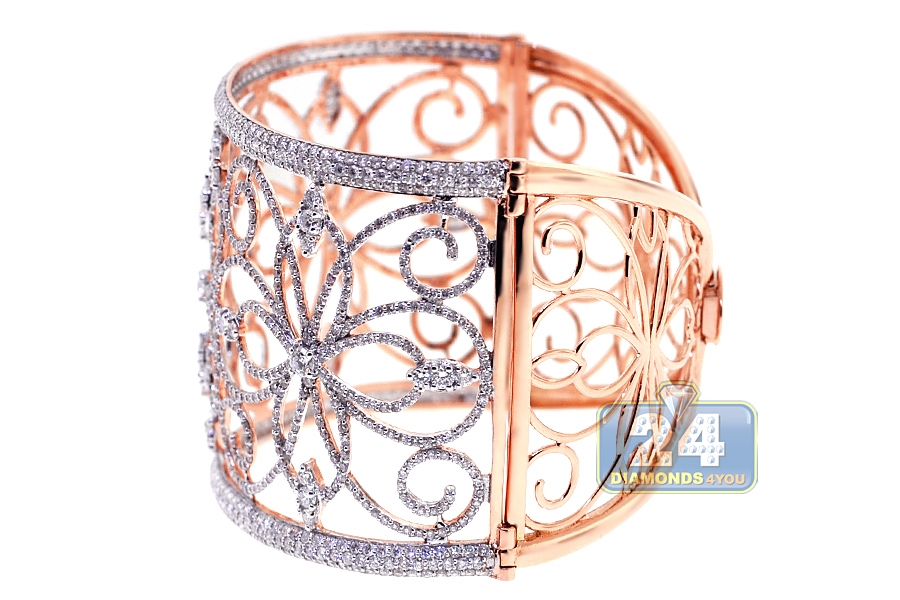 18K Rose Gold 13.05 ct Diamond Womens Filigree Bangle Bracelet