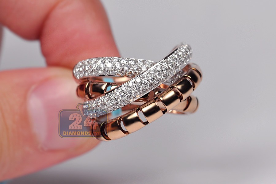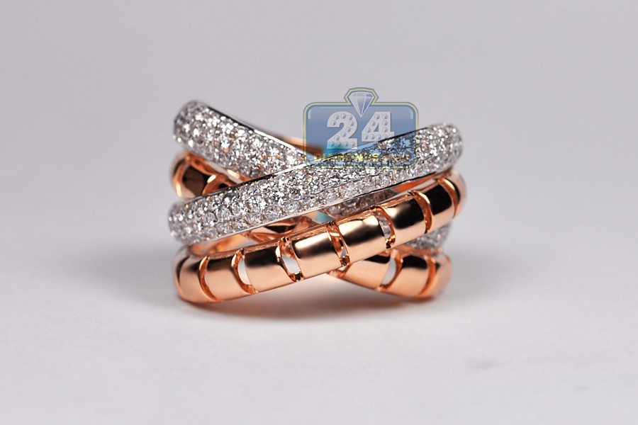 18K Rose Gold 1.50 ct Diamond Womens Crisscross Ring