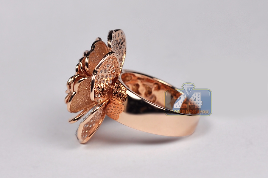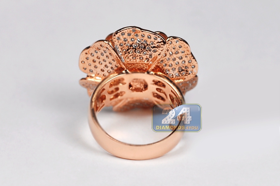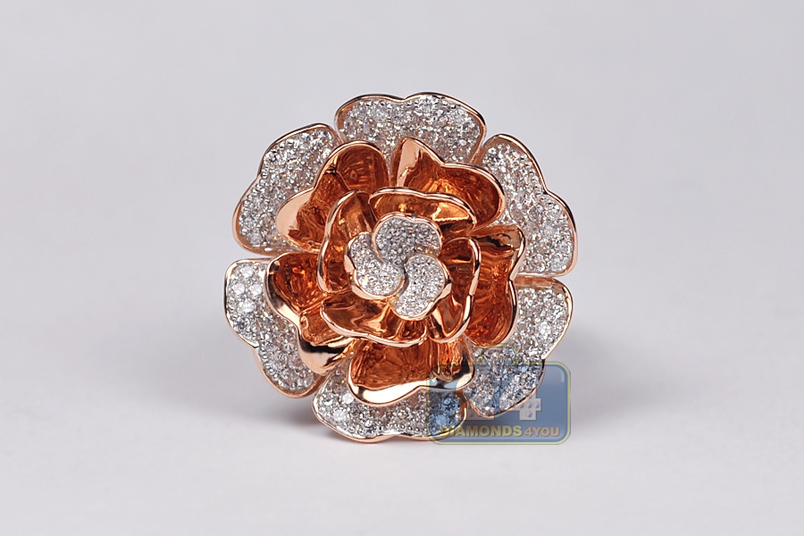 18K Rose Gold 2.17 ct Diamond Womens Flower Ring