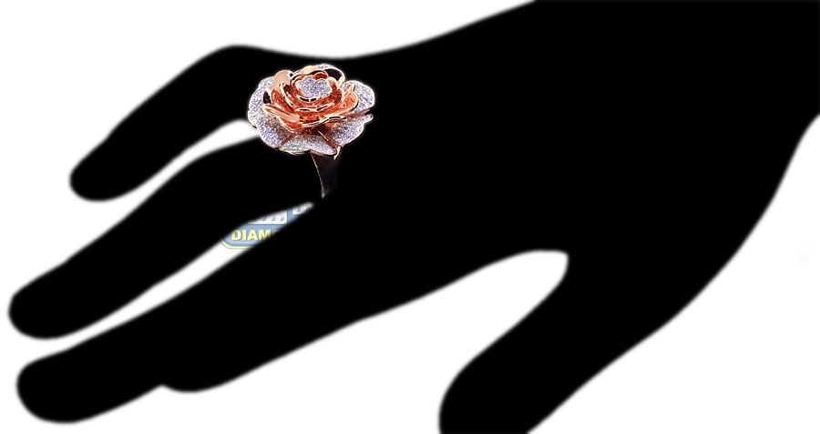You won't be able to take your eyes off of this gorgeous women's diamond flower ring! With its pure lines, nature inspired design and luxurious luster, you are definitely looking at one of a kind piece... The jewel is professionally handcrafted according to the highest level of craftsmanship from warm 18k rose gold, and encrusted with round cut diamonds totaling 2.17 carats. The brilliants are icy white and eye clean, with SI1-S2 clarity and G-H color. Shine with glittering bloom and show your exceptional taste with this diamond floral ring!